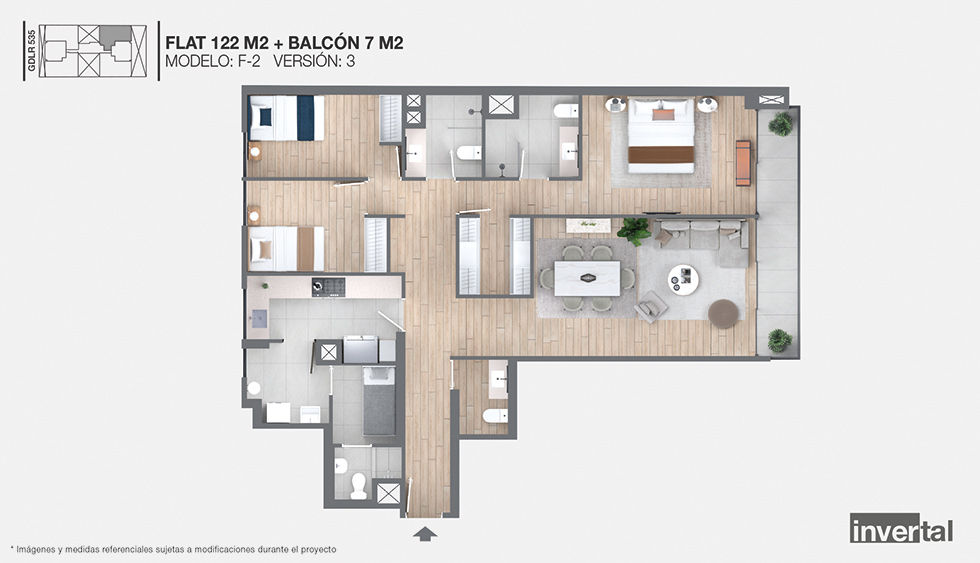 flats, 2 dormitorios, 80 m2 flats, 2 o 3 dormitorios, 120 a 135 m2 dúplex, 3 dormitorios, 140 a 155 m2